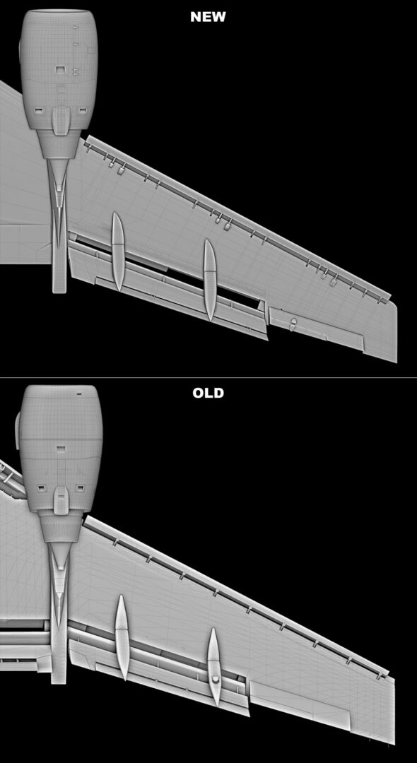 我們在之前的一些帖子中向您展示了穩定器,但今天我們想重點介紹與當前型號的比較。密切注意間隙密封件 - 升降舵和方向舵上的灰色空氣動力學蓋 - 這些現在也已正確建模。