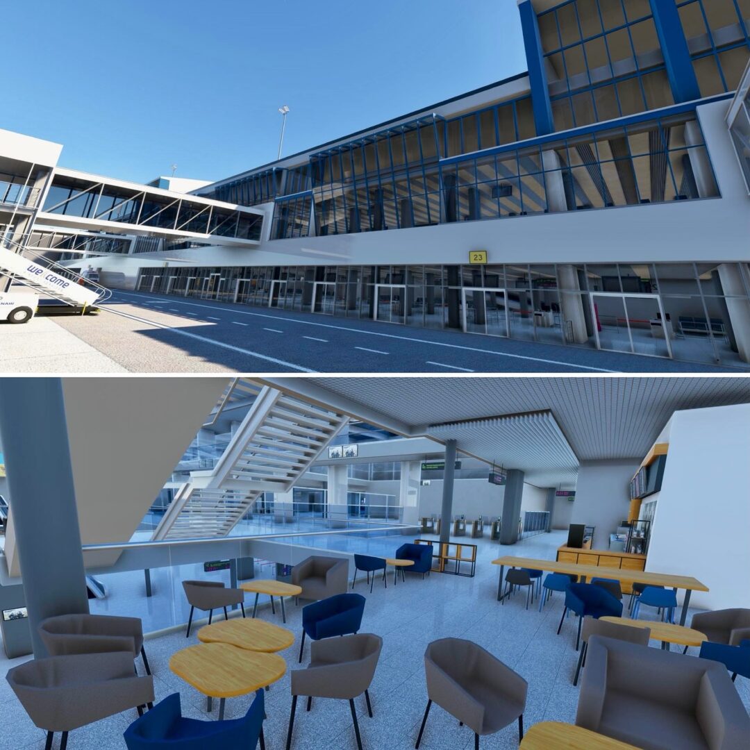 航站樓內,新的登機口、休息區、咖啡館和等候區以及定制的家具、植物和室內裝飾均已完工。每個元素——從長凳和桌子到垃圾桶和標牌——都是手工製作和放置的,以匹配現實世界的佈局。二樓的咖啡廳現在配備了新的家具和花盆,為旅客和遊客營造了獨特的氛圍。