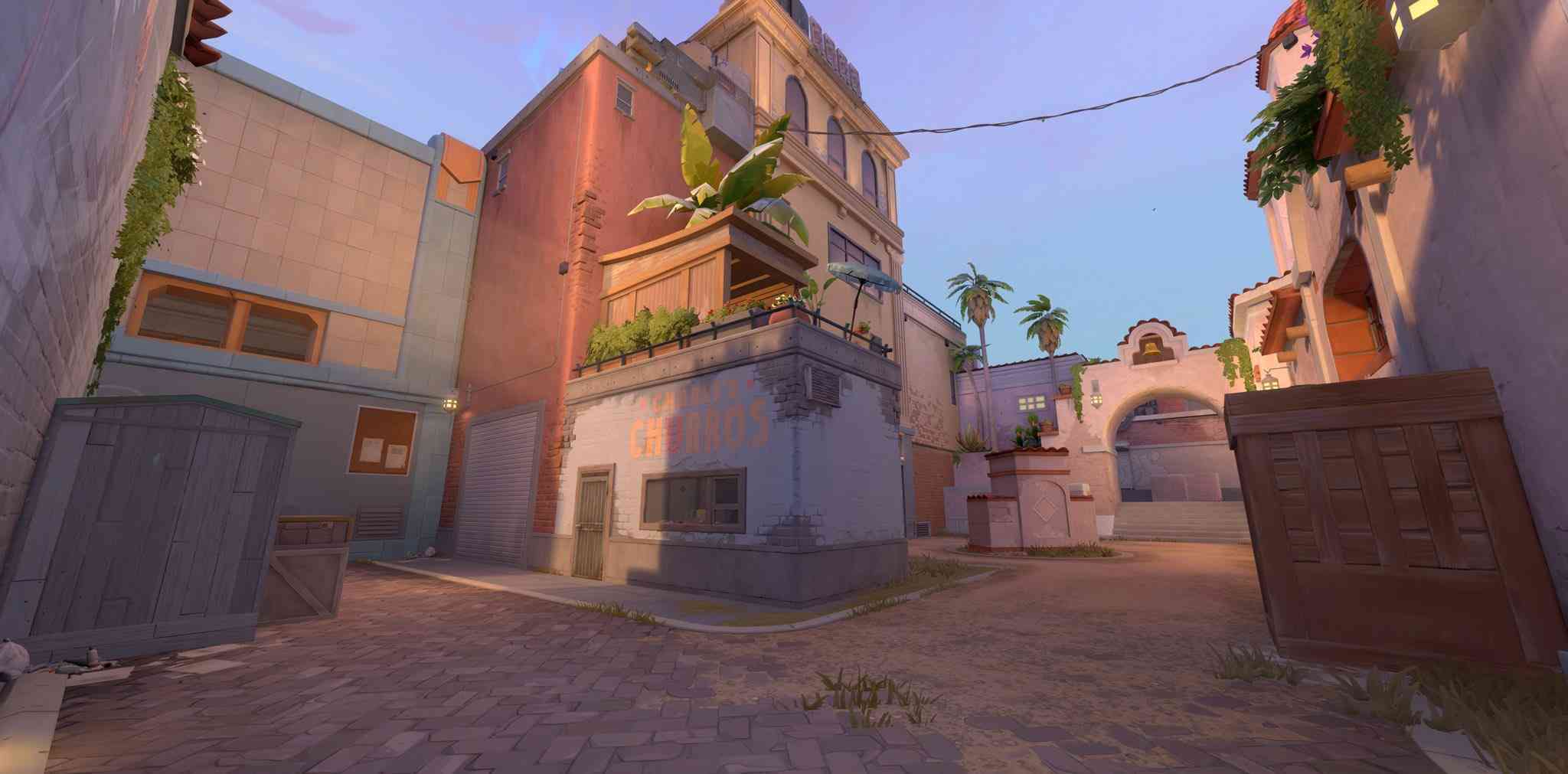 第一個值得了解的標註是 B 市場。從防守方的角度來看,它位於 B 場地的左側。在此地圖上,B 站點有兩個攻擊者可用來進入該站點的入口點:值得注意的是,要進入B市場,玩家必須清理地圖中間。與《上升》類似,《日落》中的許多瞄準決鬥都發生在中間。關於地圖的這一部分需要注意的另一件事是,有一個陷阱掉落,也類似於任一地點的《Ascent》中的活板門。此門可被打破,主要用於阻止中途進入B市場。控制地圖的這一部分可以幫助你在後期向 B 波巴發起進攻,讓敵人措手不及。