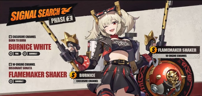 卡利登調酒師的兒子伯恩斯·懷特(Burnice White)以1.2的速度為1.2,當時是一名具有雙重弗拉特羅夫人的火災異常特工。 Burnice可以使用交替的火流,或者讓它們都同時噴射火焰以增加動力,並且有足夠的火力放在敵人身上,她將進入Nitro-Fuel雞尾酒狀態。擊中一個從硝基燃料雞尾酒攻擊中獲得焦味降臨的人,當有人擊中時,他們會遭受加力的傷害。從她的前攻擊到她的終極攻擊,伯恩斯變得很簡單,這一切都是關於盡可能快地開火來積聚熱量並進入硝基燃料雞尾酒狀態。作為額外的獎勵,伯恩斯的代理故事將在1.2上發行,稱為運氣。